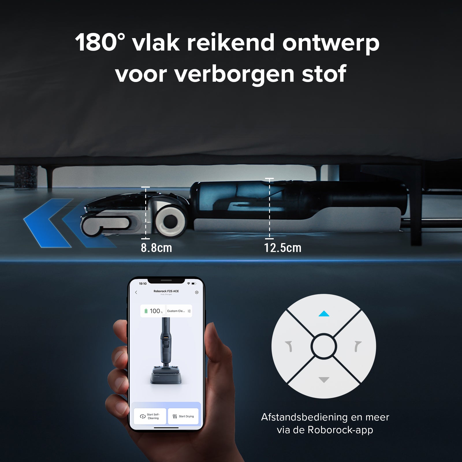 - FlatReach™ 2.0 – Low-profile design allows cleaning under sofas, beds, and furniture.