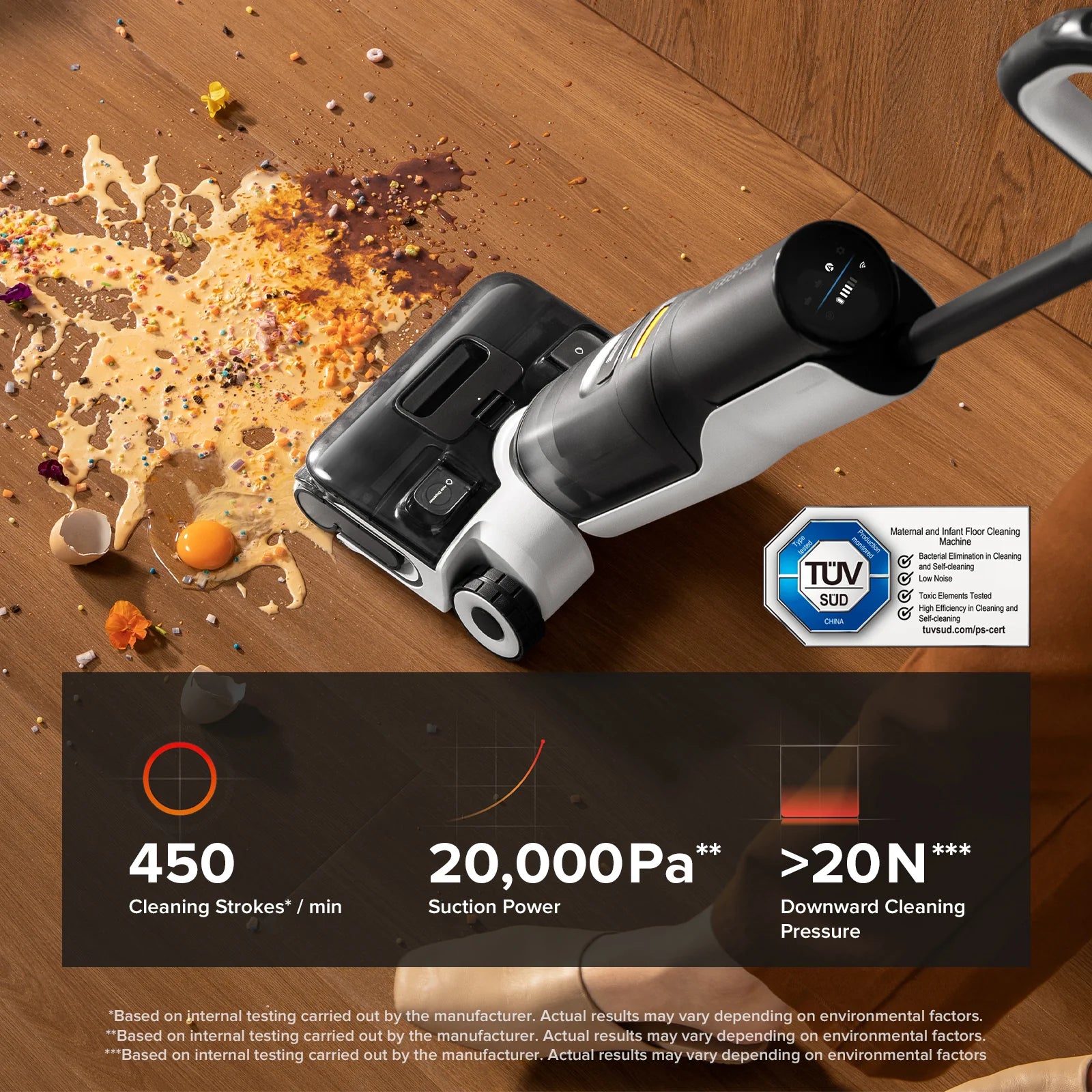 - 20,000 Pa Suction – Strong suction to handle dust, debris, crumbs, and stubborn dirt.