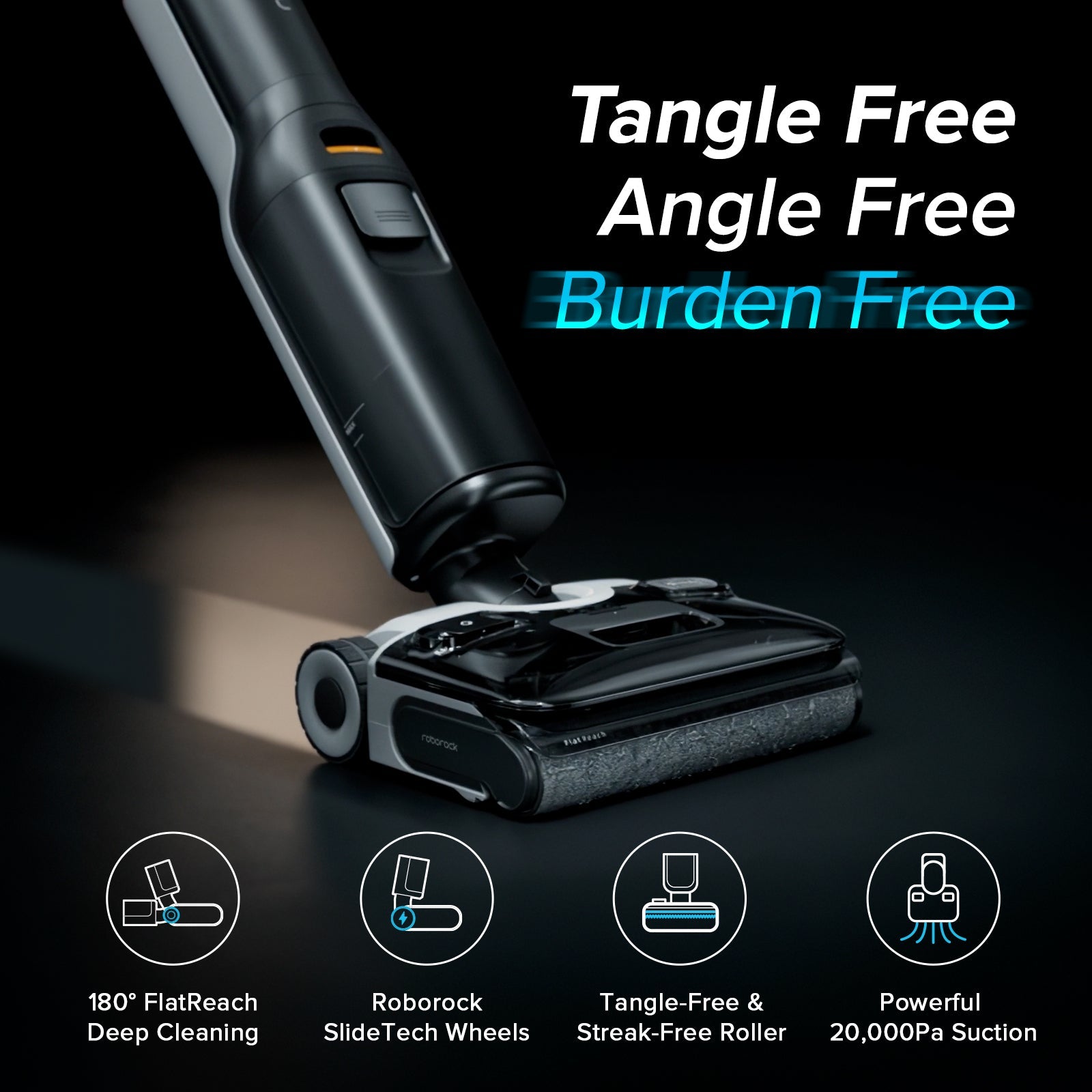Spend less time cleaning and more time living. With 20,000* Pa suction power and a 450 RPM cleaning frequency, the Roborock F25 Series delivers spotless results in a single stroke.