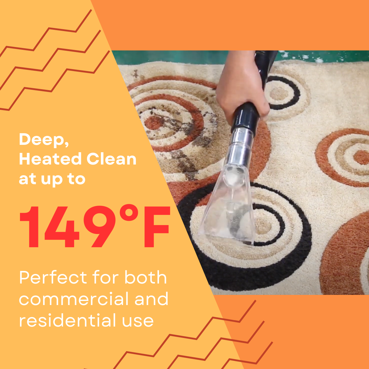 - 1300W heater delivers heated solution up to 149°F to help break down oils, spots, and embedded soils.
